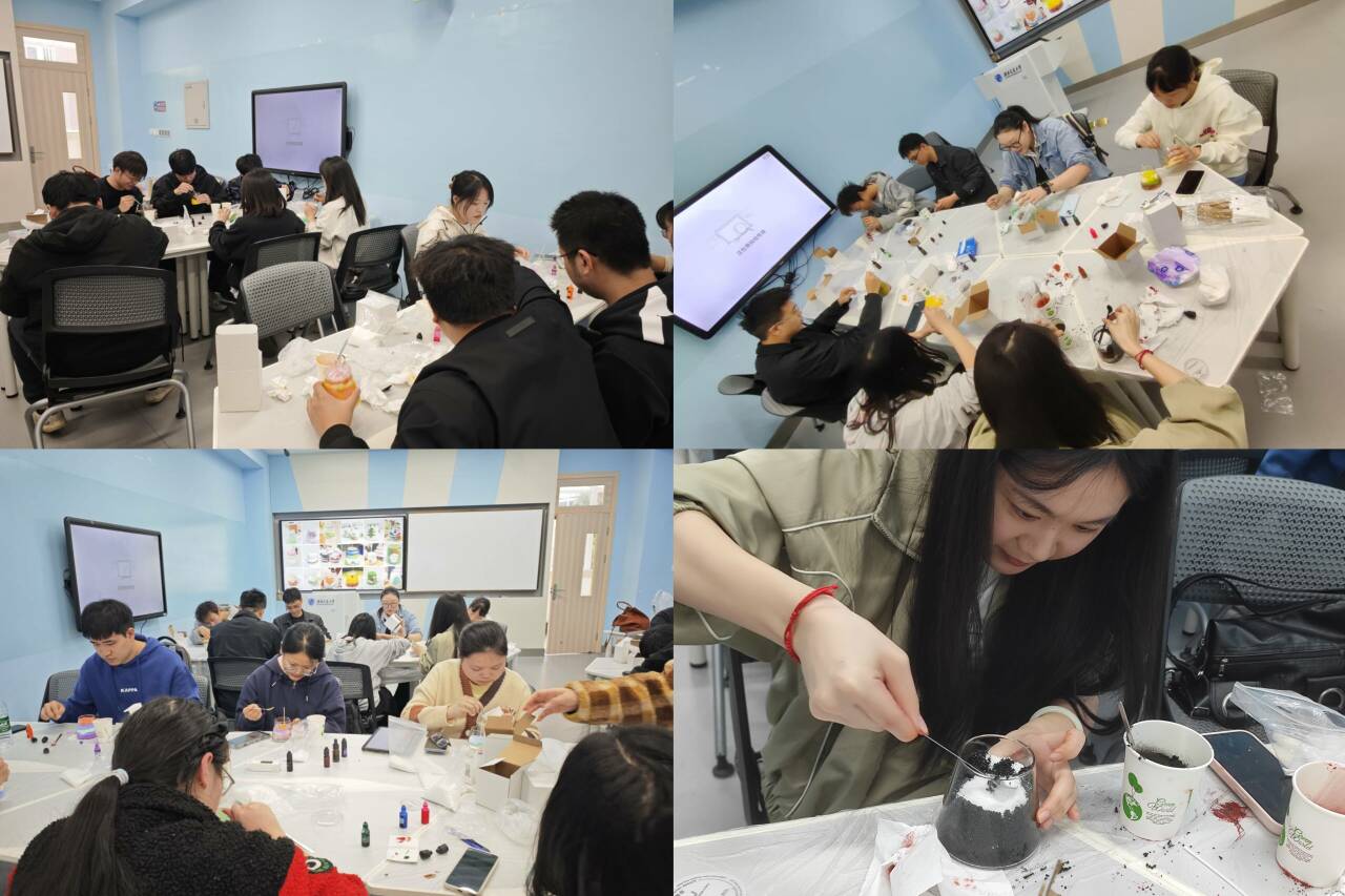 同学们分组制作沙画香薰,通过手工绘制沙画,并滴上心仪的香薰精油。这一环节将手工创作与心理隐喻结合,将难以言说的情感具象化,达到宣泄与疗愈的效果。
