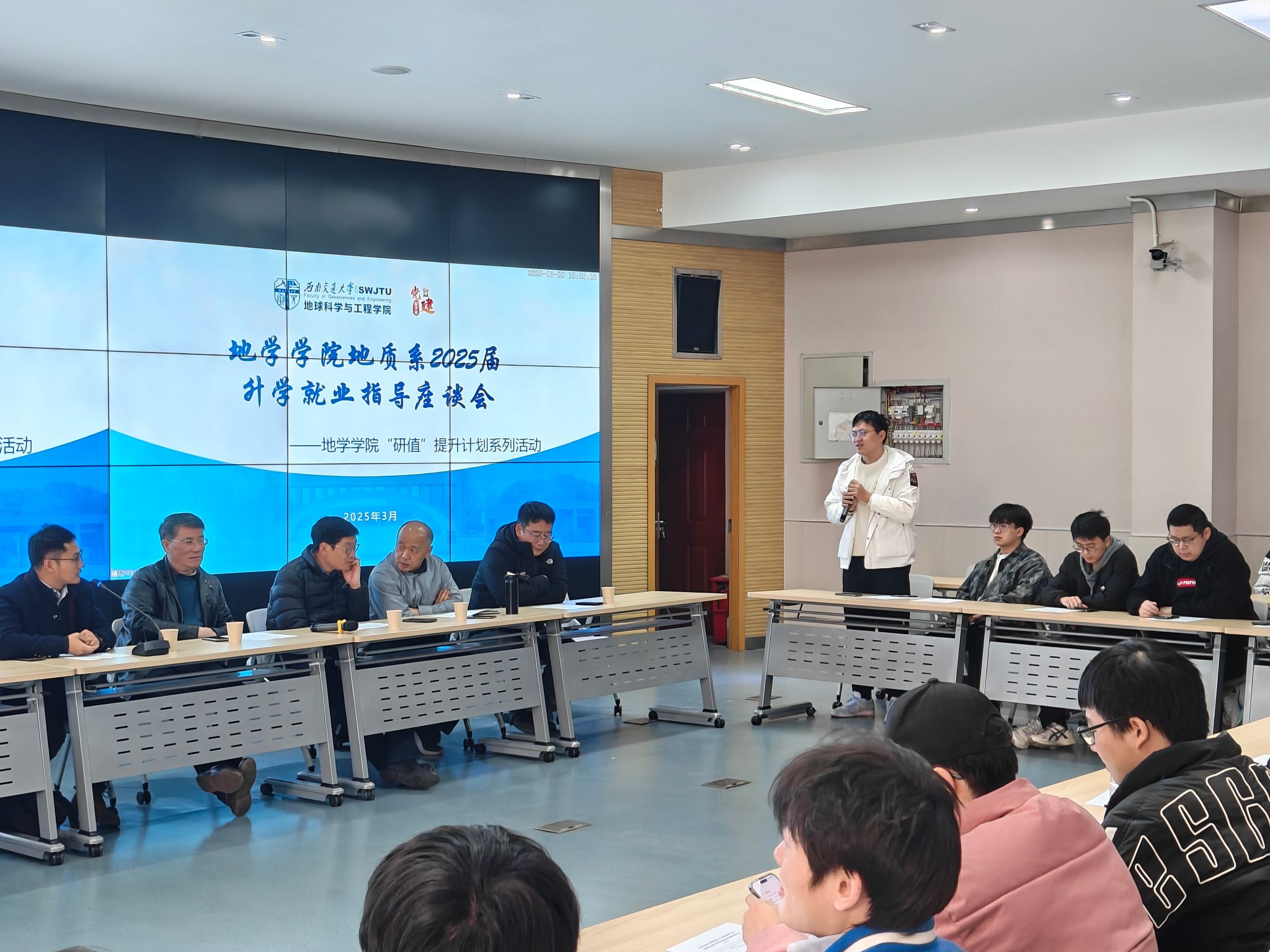 为全面护航毕业班学生顺利就业升学,3月20日下午,太阳成集团tyc9728地质工程系教工党支部联合学院学习与科创中心在X4243组织开展2025届升学就业指导座谈会。此次座谈会是学院“研值”提升计划系列活动之一,聚焦升学与职业发展路径选择,通过师生深度对话为地质学生提供切实指导。本次活动由地质工程系教工党支部书记张志厚老师主持,地质系老师胡卸文、赵晓彦、陈强、赵志明、廖昕、裴秋明、石宇、许钟元,毕业班辅导员老师梁爽及2025届本科毕业班待就业学生参加本次座谈会。