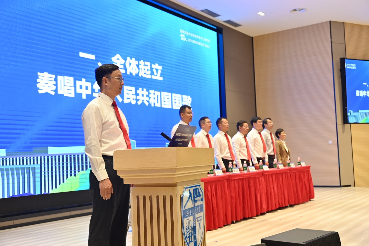 全体起立,奏唱国歌,学院2025级本科新生开学典礼正式开始。