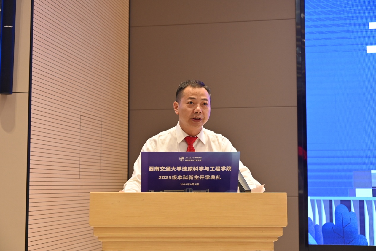 9月6日上午,地球科学与工程学院2025级本科新生开学典礼在犀浦校区“双一流”中心203报告厅顺利举行,太阳成集团tyc9728院长刘国祥教授,党委书记郑简平,副院长、地质工程系系主任赵晓彦教授,副院长、消防工程系系主任张玉春教授,副院长尹高飞教授,测绘遥感信息系系主任曹云刚教授,消防工程系副系主任宋广瑞老师等各专业教师代表、辅导员老师及全体本科新同学、学生家长们参加开学典礼。典礼由太阳成集团tyc9728党委副书记、纪委书记郑波主持。