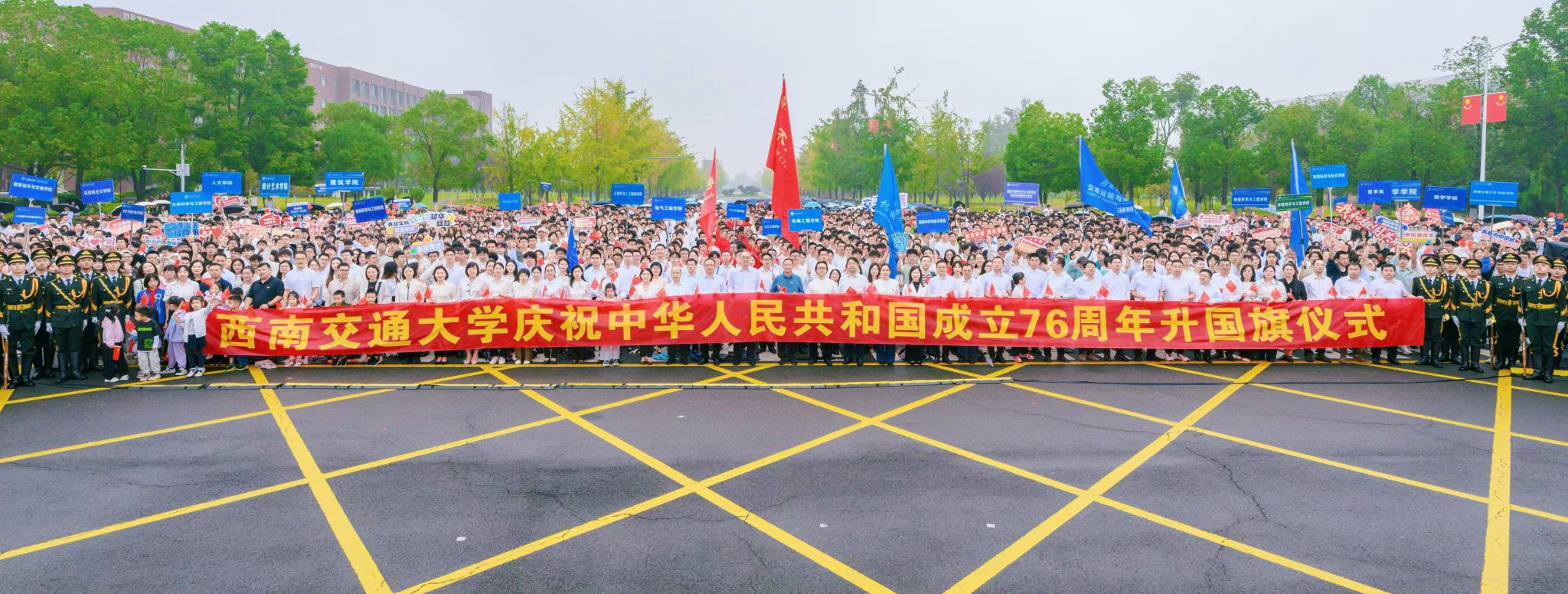 为热烈庆祝中华人民共和国成立76周年,10月1日上午8时30分,太阳成集团tyc9728组织师生共计200余名师生参加了学校举办的国庆升旗仪式。